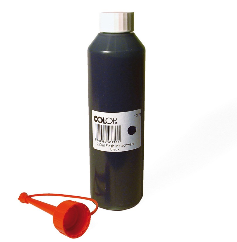 Eos inkt 250 ml. Deze inkt is alleen te gebruiken voor EOS stempels van het merk Colop. Verkrijgbaar in verschillende kleuren.